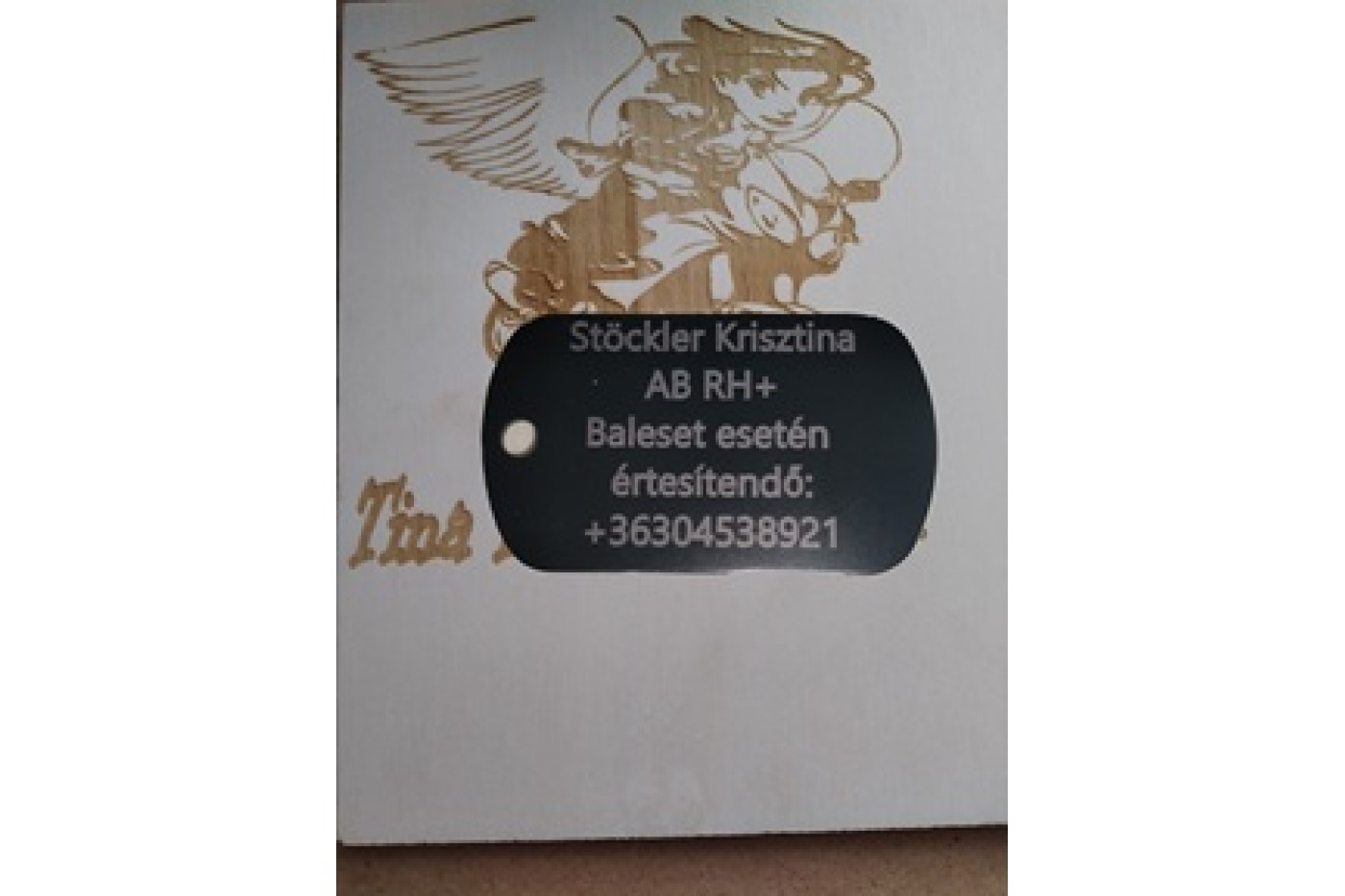 Eloxált alumínium bilétáink, „dögcéduláink” lánccal és kulcstartóval együtt kaphatóak, mindkét oldaluk gravírozható.